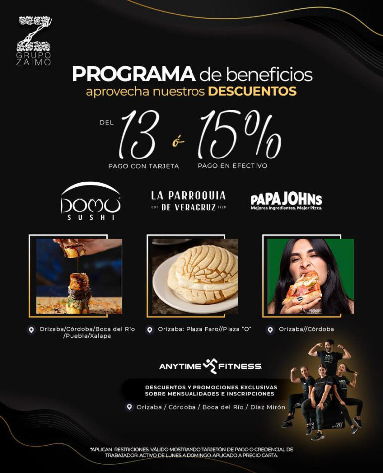 Obtén 15% de descuento pago en efectivo y 13% de descuento en pago con tarjeta en tu consumo de Lunes a Domingo en el restaurante al presentar tu membresía ARACUS vigente.